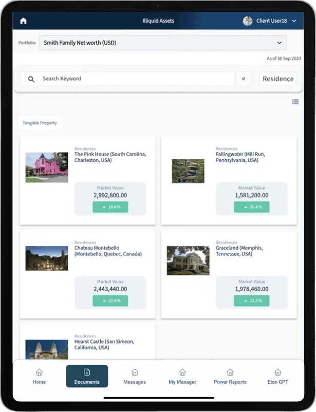 Live Fully, Securely, with Confidence EtonAlpha™ allows you to focus on living your best life while leaving the complexity of wealth management to a smart, secure, and comprehensive platform. Tailored for your unique assets and family legacy, it’s the digital control tower for every aspect of your wealth.