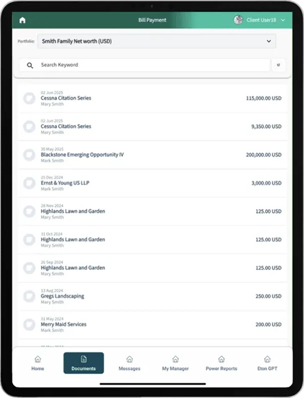 EtonAlpha™ provides a virtual, secure, and user-friendly wealth management experience - essentially putting a full family office in the palm of your hand.